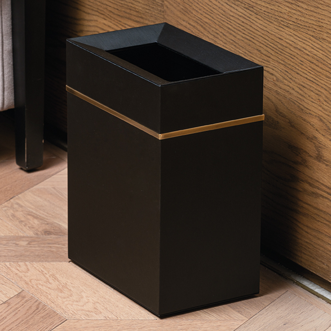 A practical trash bin has a built-in compartment to store bag rolls for convenient replacement.